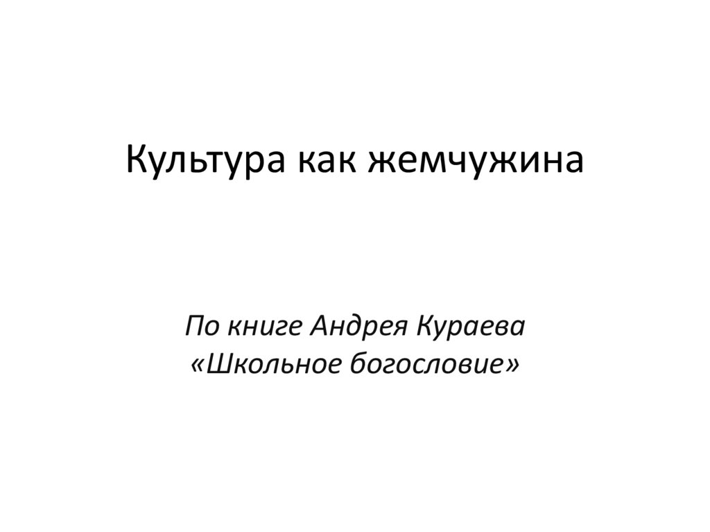 Культура как жемчужина. По книге Андрея Кураева «Школьное богословие»