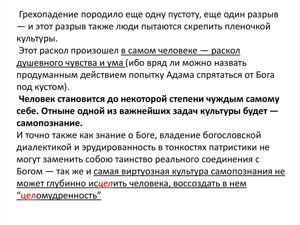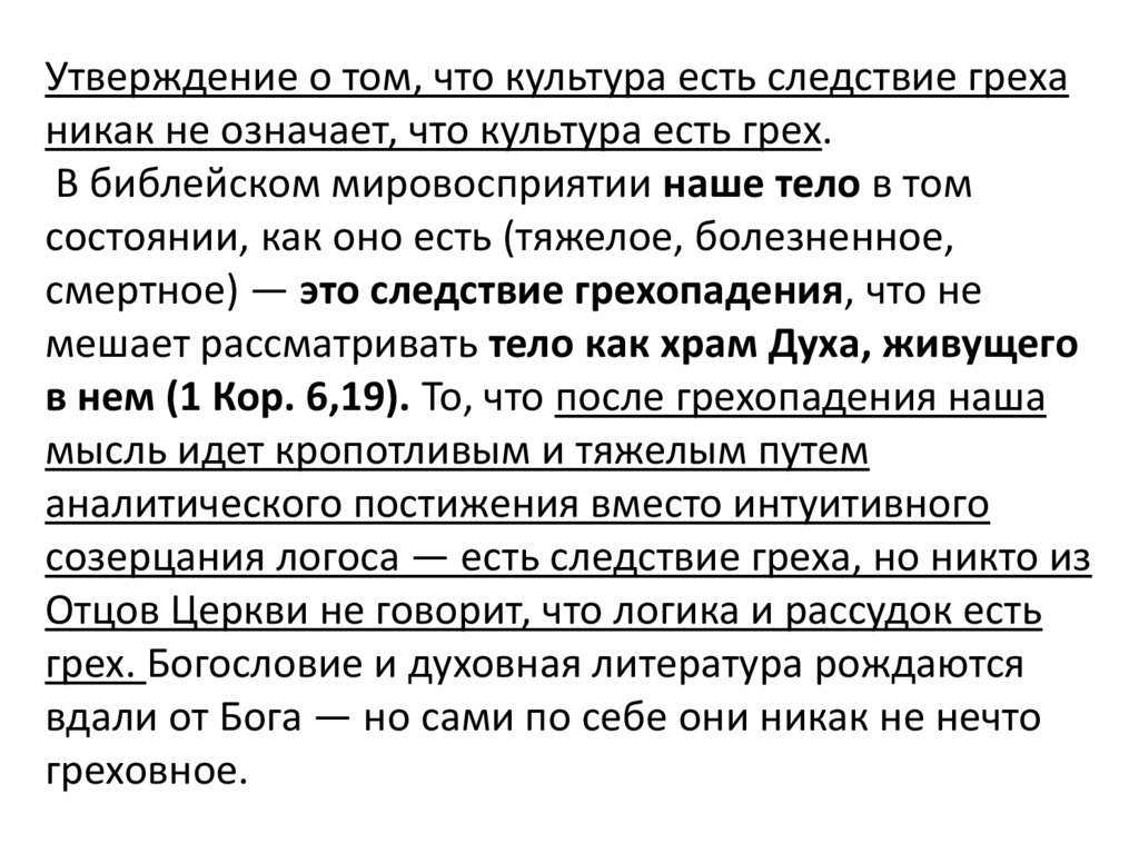Утверждение о том, что культура есть следствие греханикак не означает, что культура есть грех.