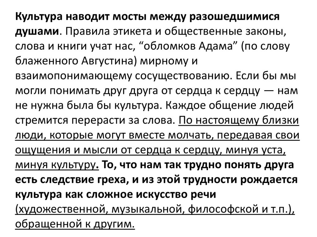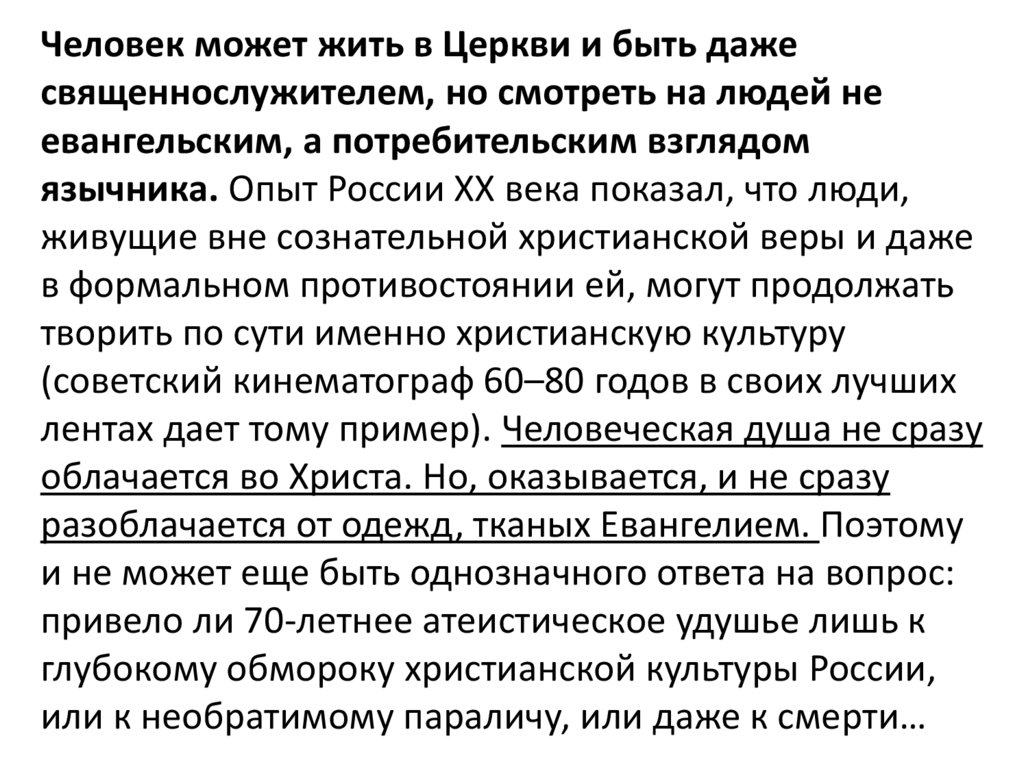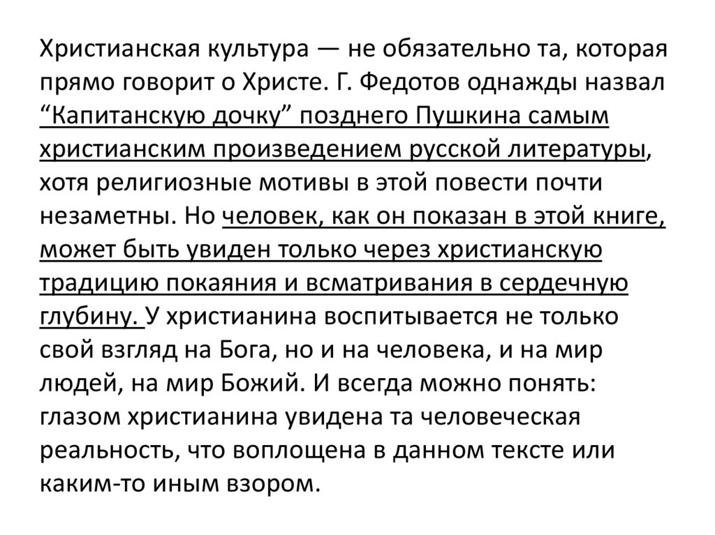 Христианская культура — не обязательно та, котораяпрямо говорит о Христе. Г. Федотов однажды назвал