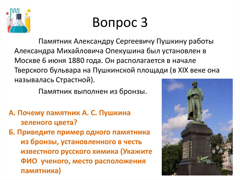 Вопрос 3Памятник Александру Сергеевичу Пушкину работы