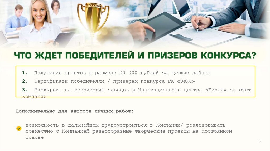1.Получение грантов в размере 20 000 рублей за лучшие работы