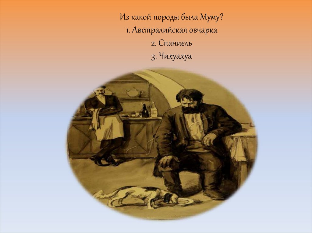Из какой породы была Муму?1. Австралийская овчарка