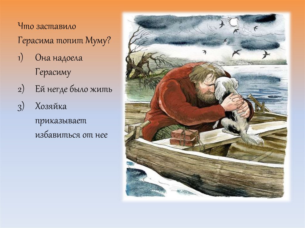 Что заставилоГерасима топит Муму?