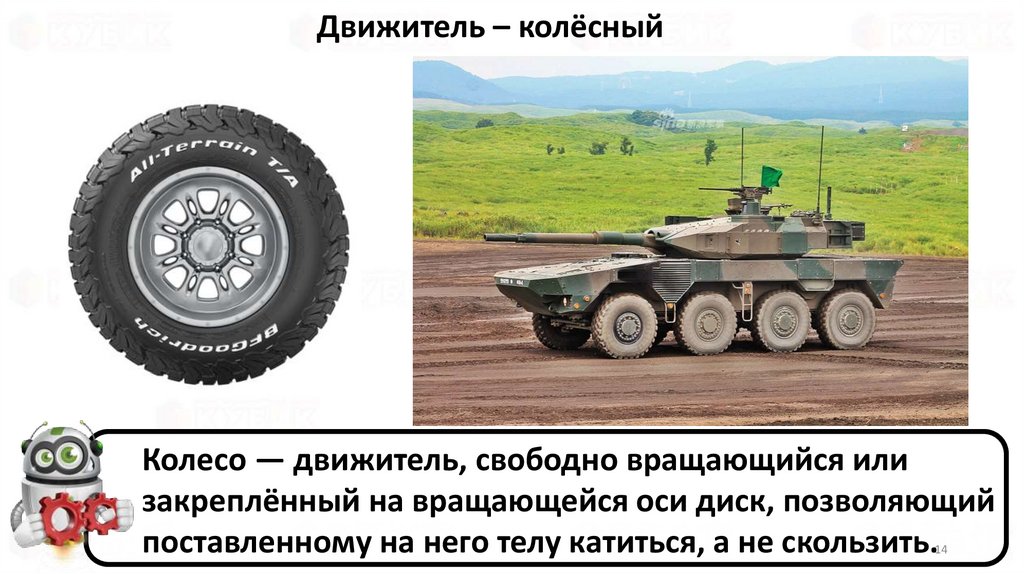 Движитель – колёсныйКолесо — движитель, свободно вращающийся или