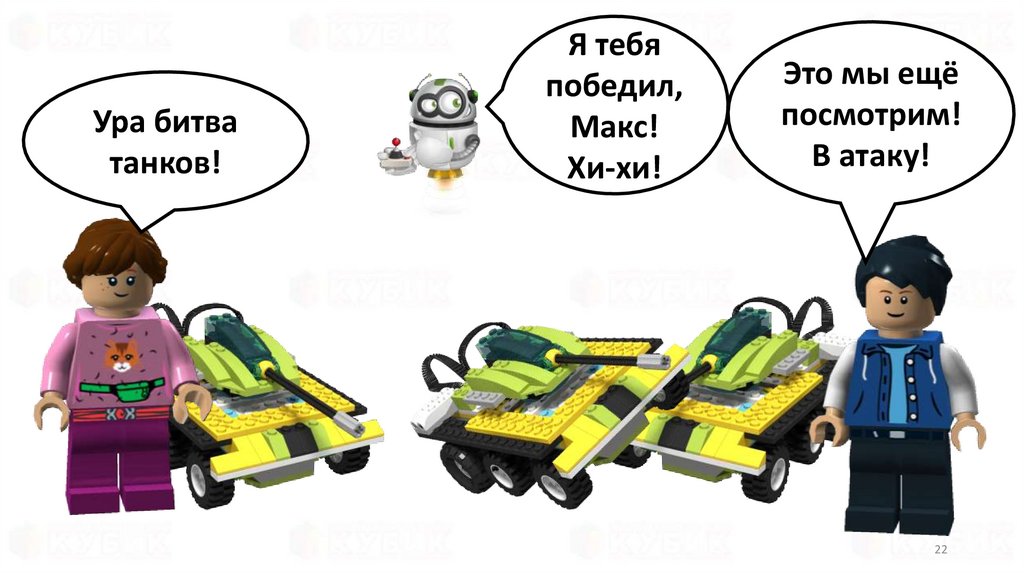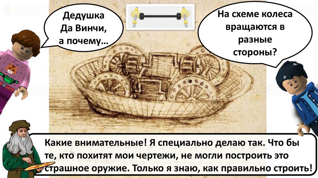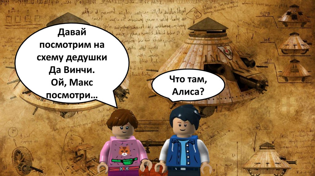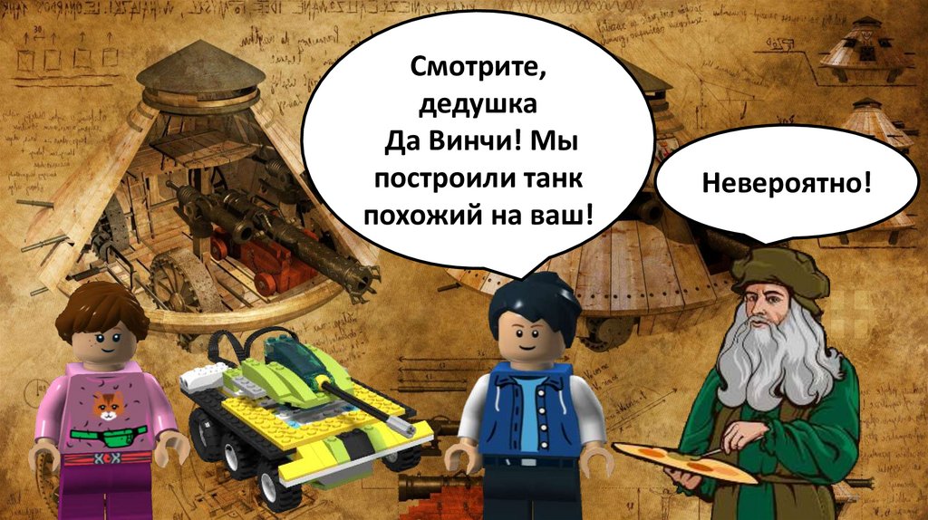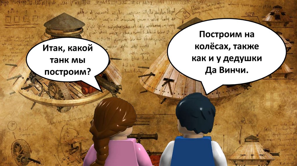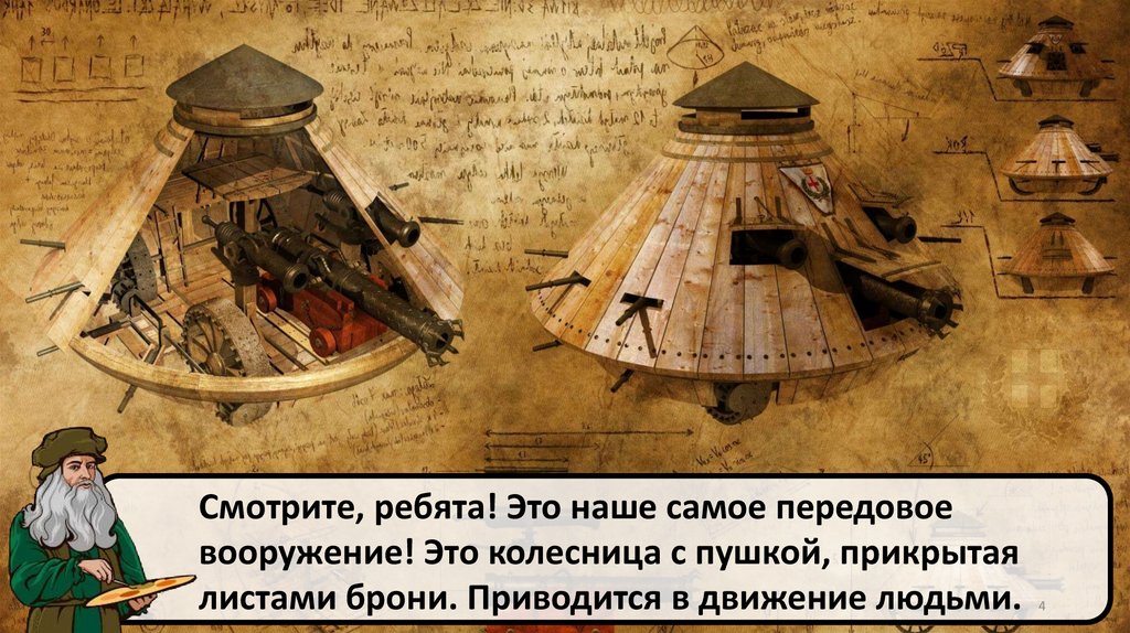 Смотрите, ребята! Это наше самое передовоевооружение! Это колесница с пушкой, прикрытая