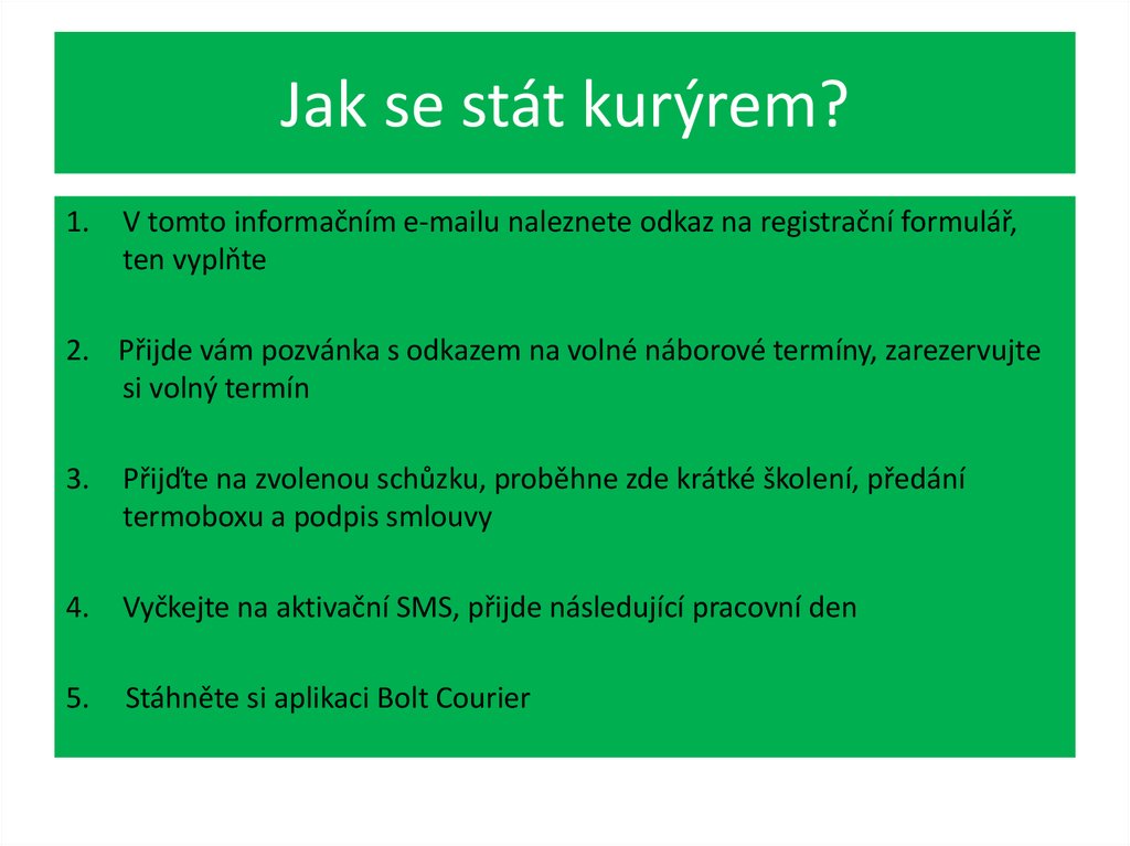Přijďte na zvolenou schůzku, proběhne zde krátké školení, předání