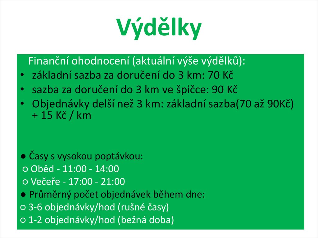 • Objednávky delší než 3 km: základní sazba(70 až 90Kč)