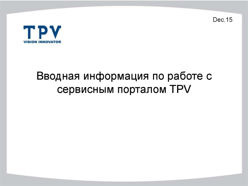 Вводная информация по работе с сервисным порталом TPV