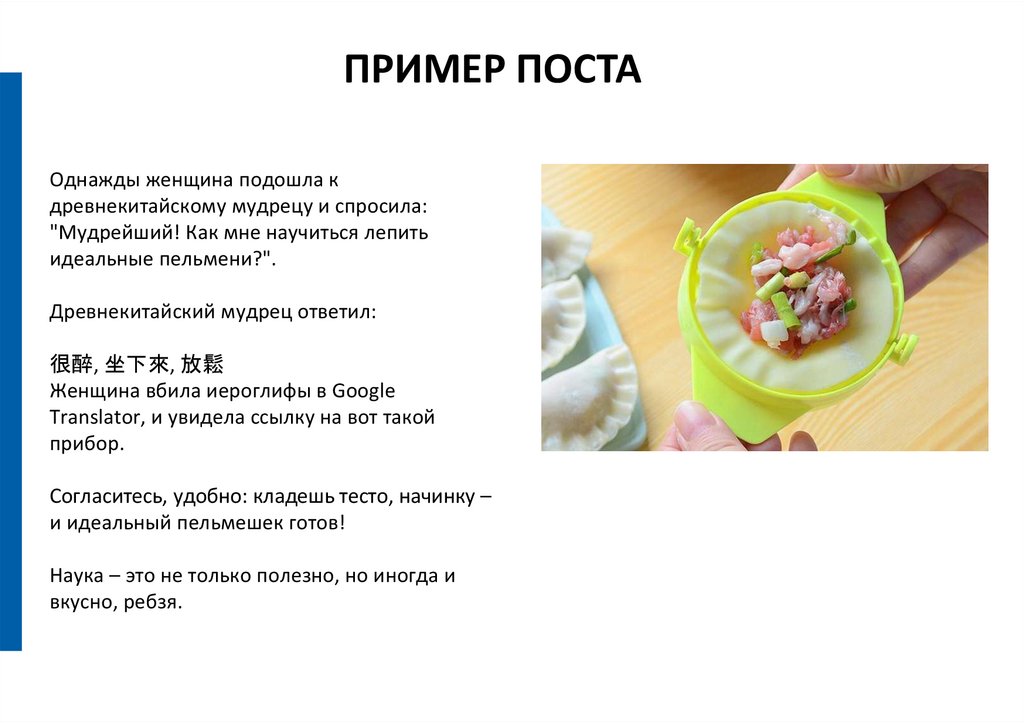 Контент должен подаваться максимально просто и с юмором.