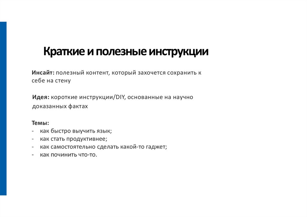 Краткие и полезные инструкцииИнсайт: полезный контент, который захочется сохранить к