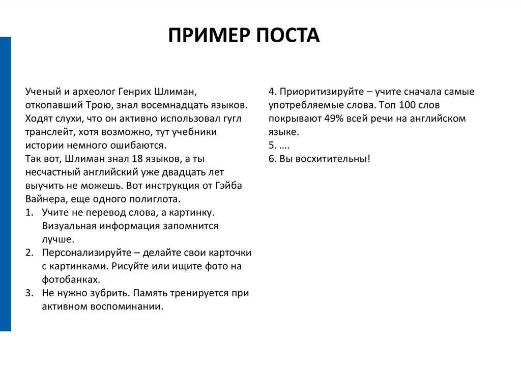 ПРИМЕР ПОСТАУченый и археолог Генрих Шлиман,
