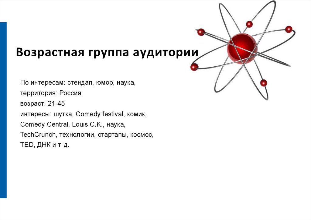 Возрастная группа аудиторииПо интересам: стендап, юмор, наука,