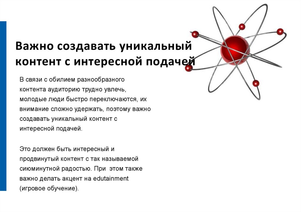 Важно создавать уникальныйконтент с интересной подачей