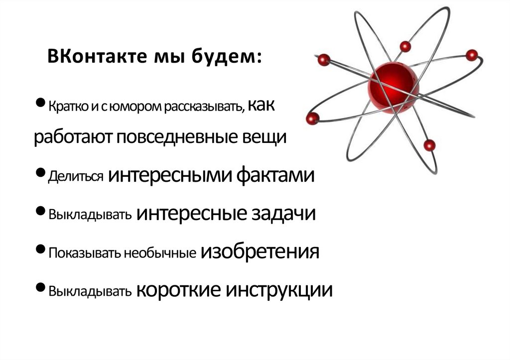 ВКонтакте мы будем:•Кратко и с юмором рассказывать, как