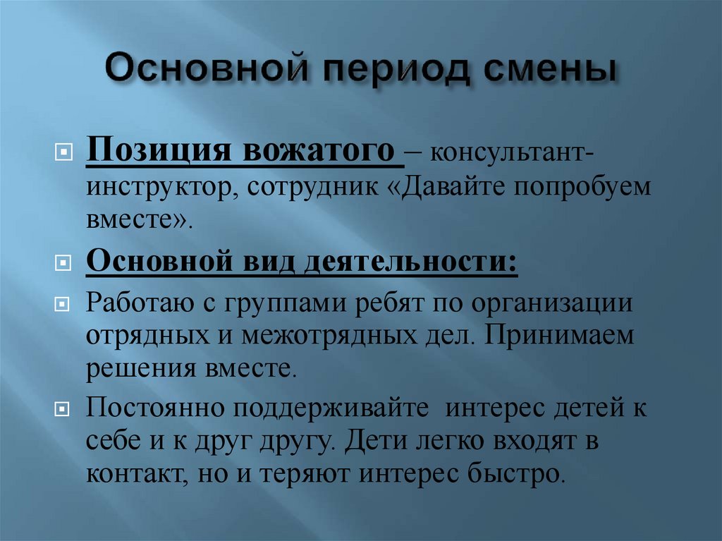 Позиция вожатого – консультант-инструктор, сотрудник «Давайте попробуем