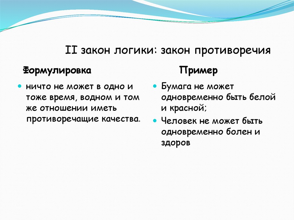 II закон логики: закон противоречияФормулировка
