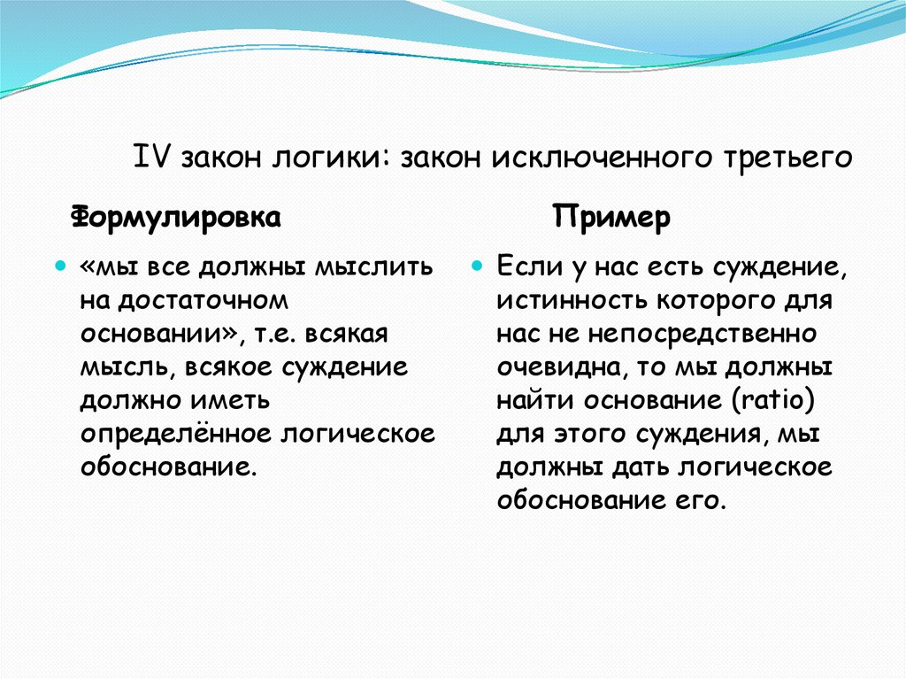 IV закон логики: закон исключенного третьегоФормулировка