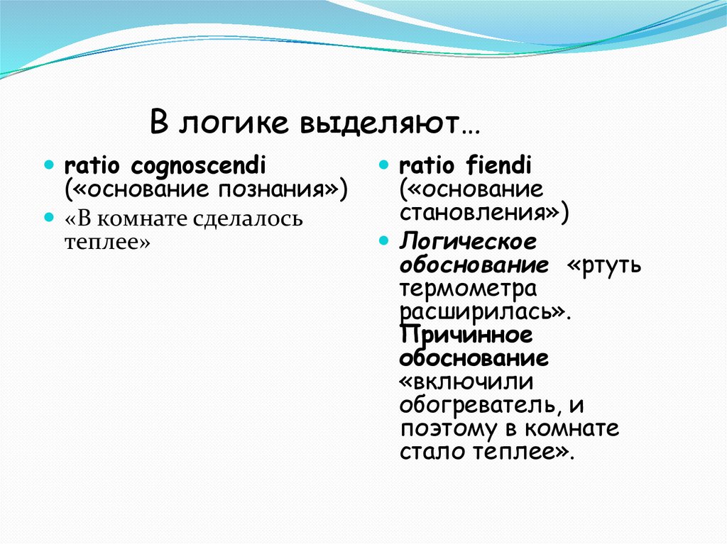 В логике выделяют…ratio cognoscendi