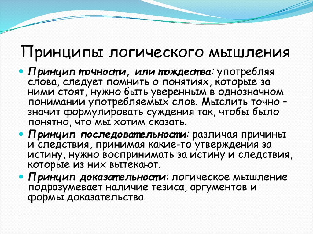 Принципы логического мышленияПринцип т очност и, или т ождест ва: употребляя