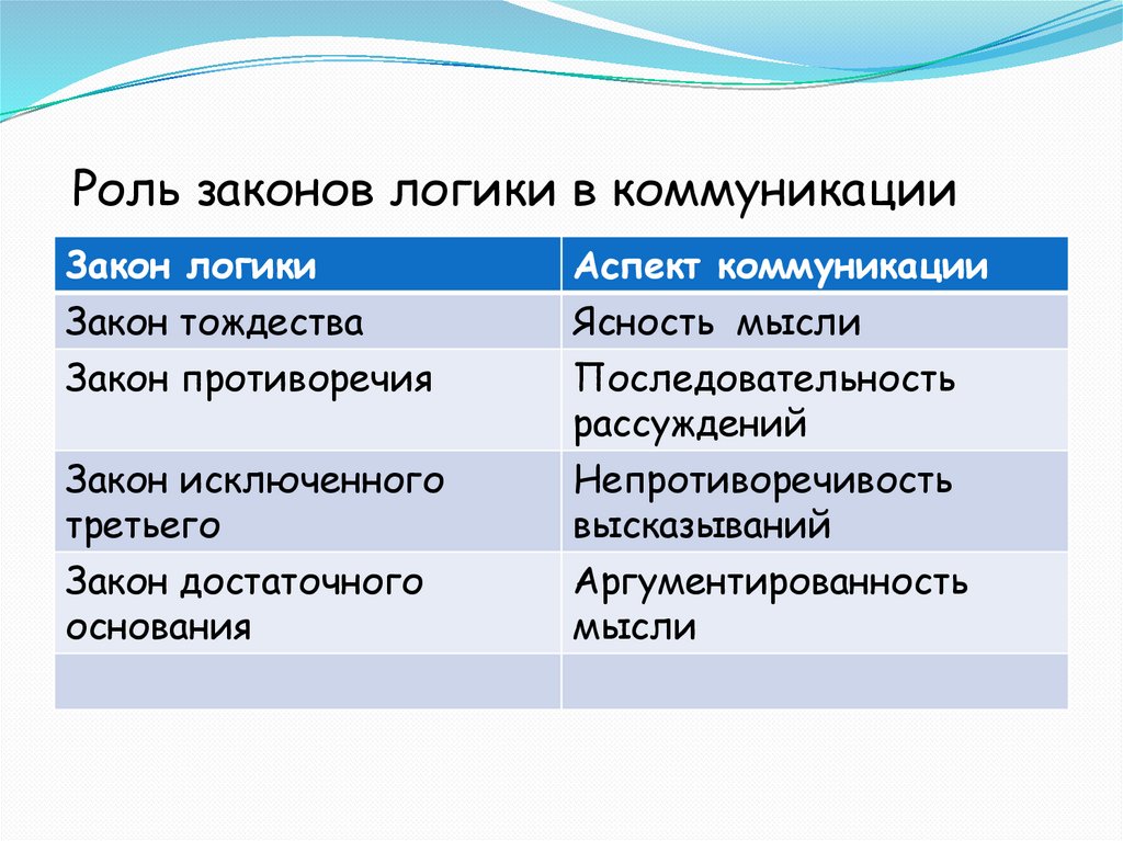 Роль законов логики в коммуникацииЗакон логики