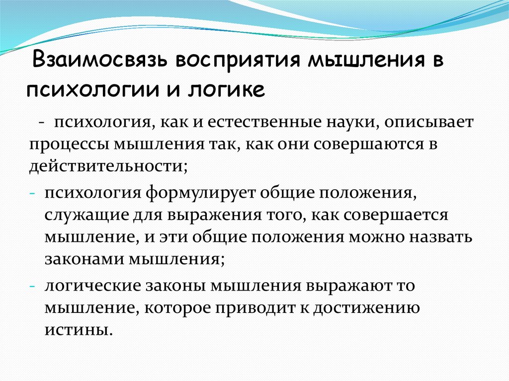 Взаимосвязь восприятия мышления впсихологии и логике