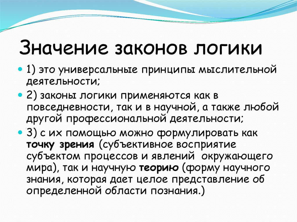Значение законов логики1) это универсальные принципы мыслительной