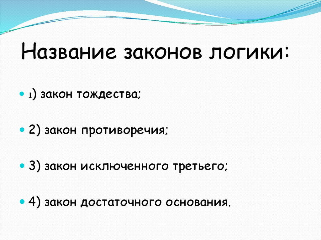 Название законов логики:1) закон тождества;