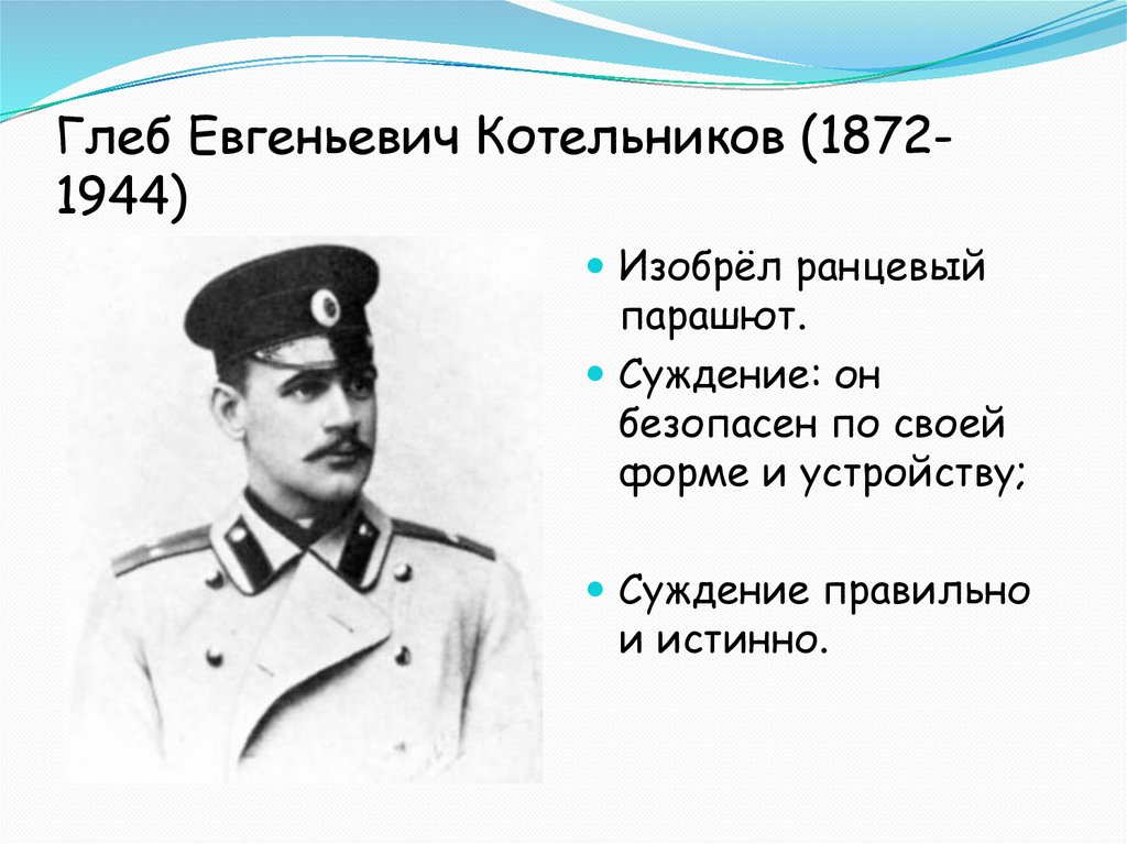 Глеб Евгеньевич Котельников (18721944)Изобрёл ранцевый