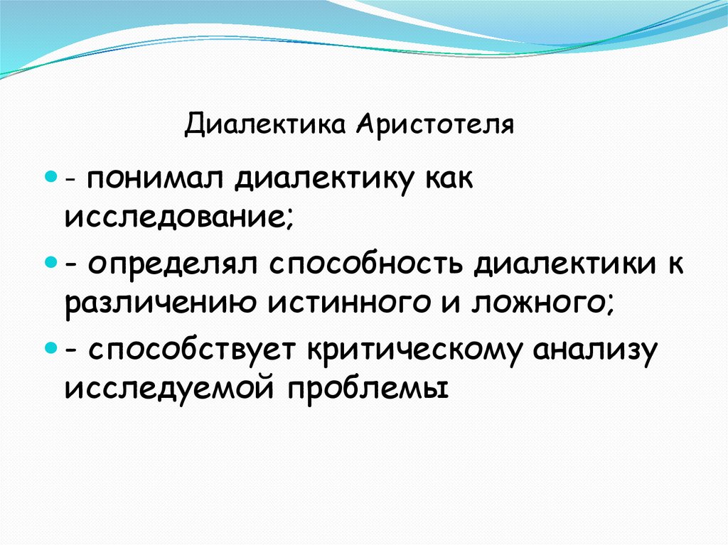Диалектика Аристотеля- понимал диалектику как