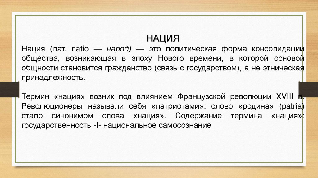 Термин «нация» возник под влиянием Французской революции XVIII в.