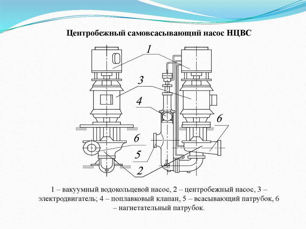 Центробежный самовсасывающий насос НЦВС1 – вакуумный водокольцевой насос, 2 – центробежный насос, 3 –
