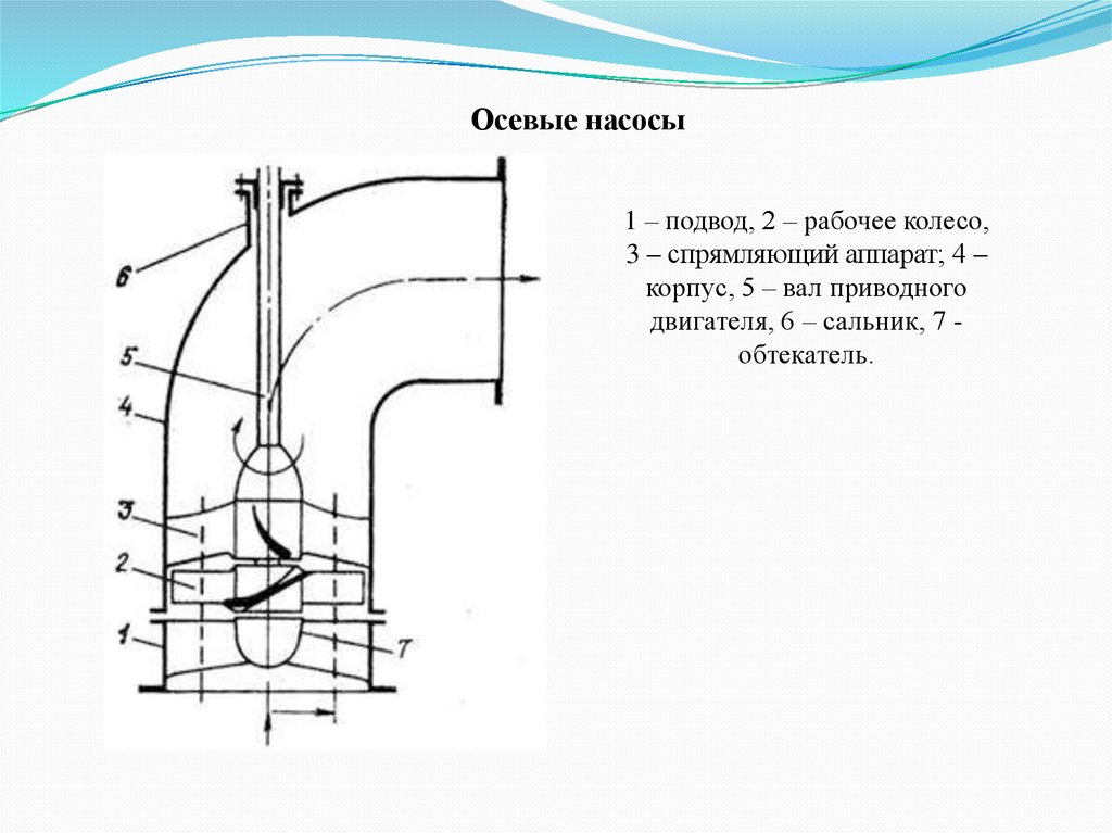 Осевые насосы1 – подвод, 2 – рабочее колесо,