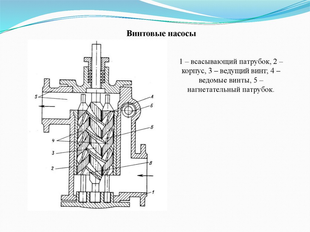 Винтовые насосы1 – всасывающий патрубок, 2 –