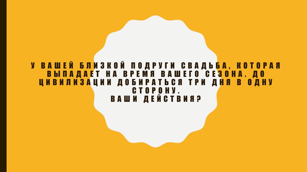 У ВАШЕЙ БЛИЗКОЙ ПОДРУГИ СВАДЬБА, КОТОРАЯВЫПАДАЕТ НА ВРЕМЯ ВАШЕГО СЕЗОНА. ДО