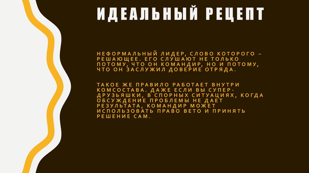 ИДЕАЛЬНЫЙ РЕЦЕПТН Е Ф О Р М А Л Ь Н Ы Й Л И Д Е Р, С Л О В О К О Т О Р О Г О –