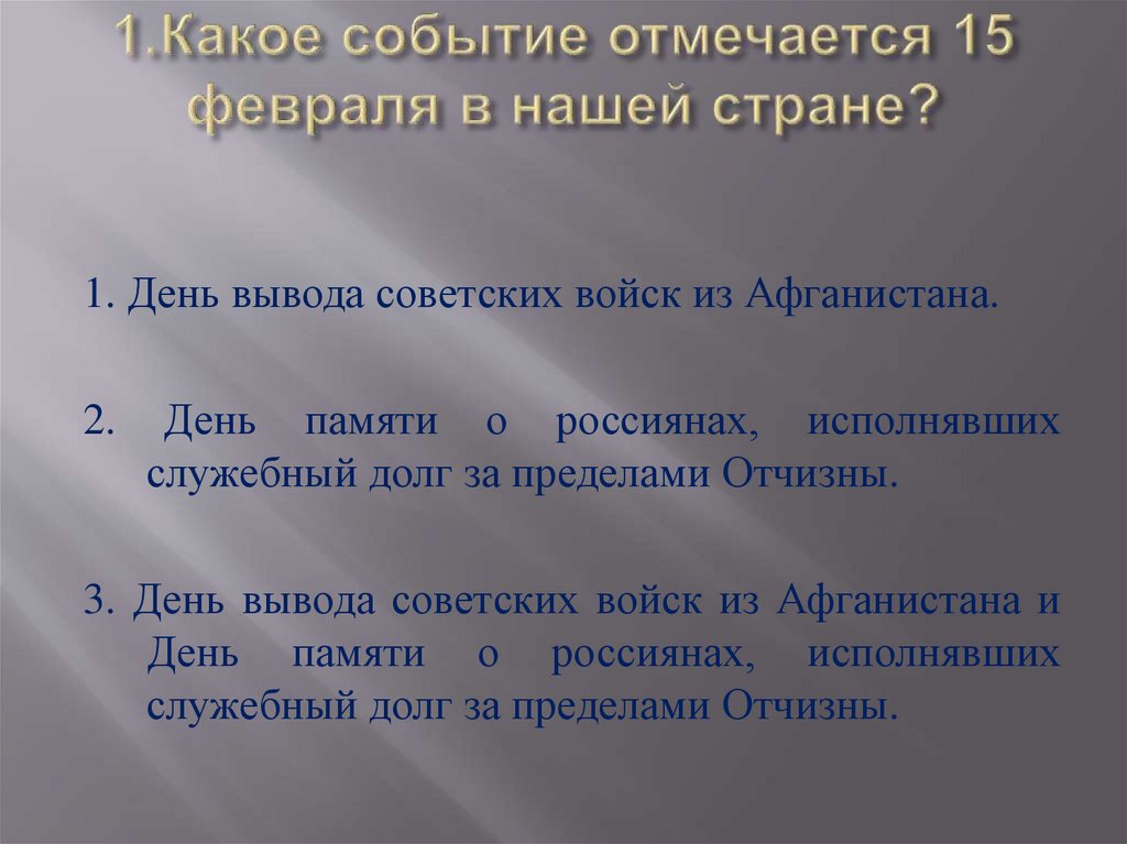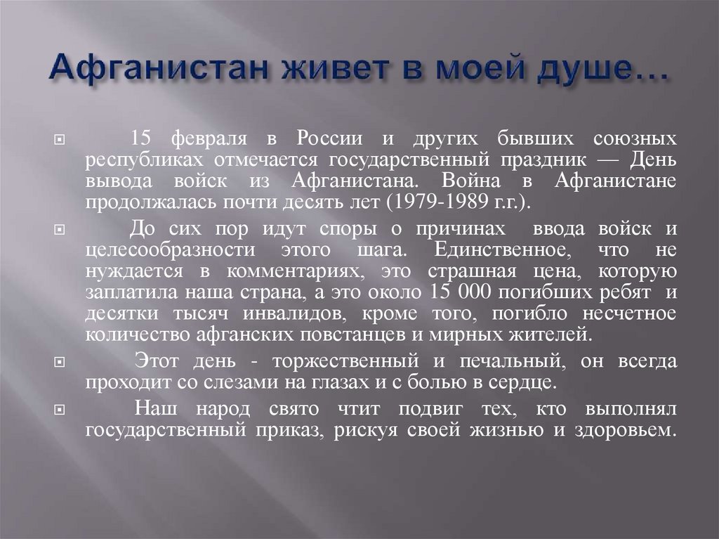 15 февраля в России и других бывших союзныхреспубликах отмечается государственный праздник — День