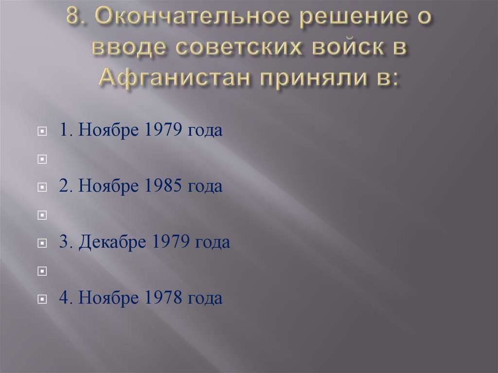 1. Ноябре 1979 года2. Ноябре 1985 года