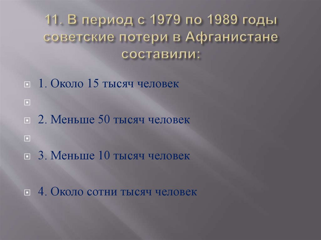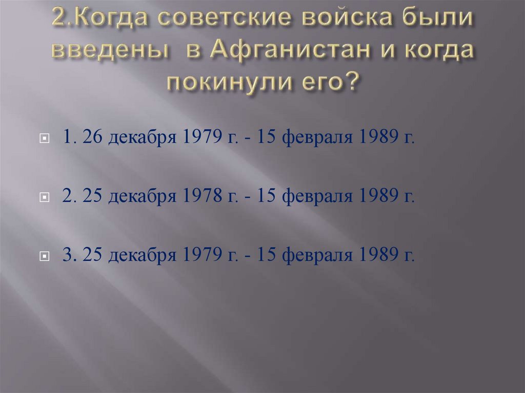 1. 26 декабря 1979 г. - 15 февраля 1989 г.2. 25 декабря 1978 г. - 15 февраля 1989 г.
