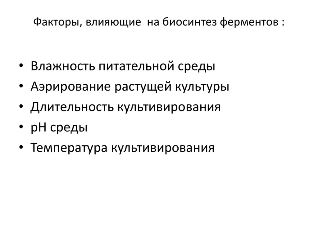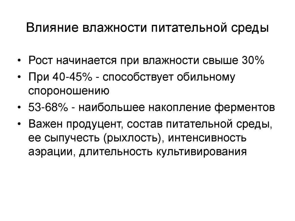 Факторы, влияющие на биосинтез ферментов :Влажность питательной среды