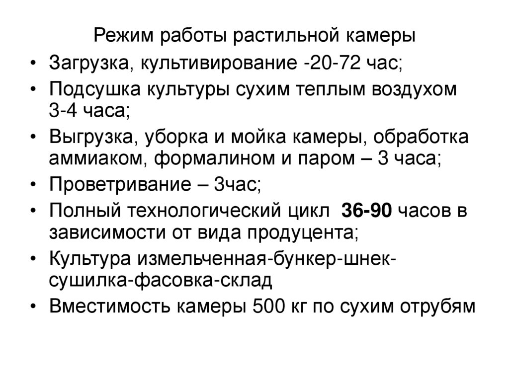 Режим работы растильной камеры