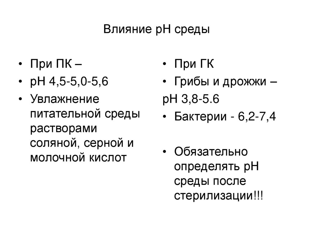 Влияние рН среды• При ПК –
