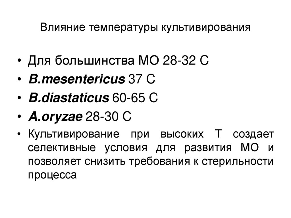 Влияние температуры культивированияДля большинства МО 28-32 C