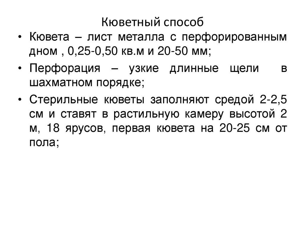 Кюветный способ• Кювета – лист металла с перфорированным