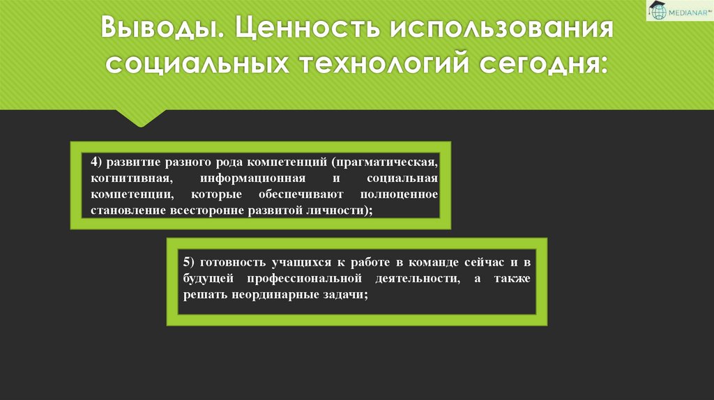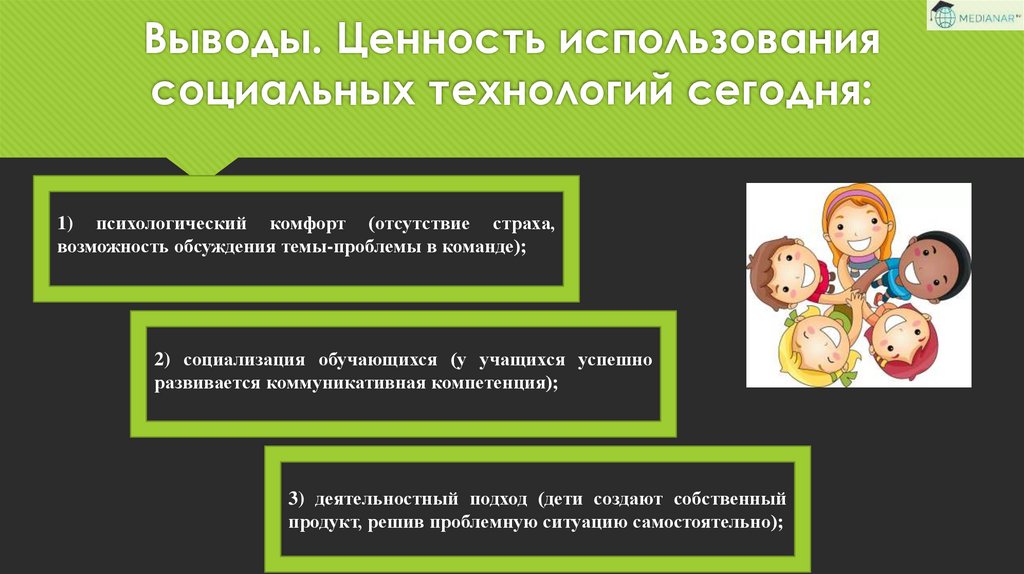 Выводы. Ценность использованиясоциальных технологий сегодня:
