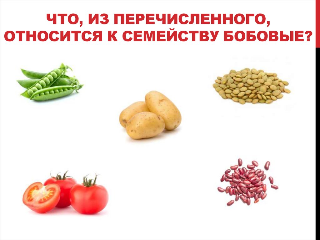 ЧТО, ИЗ ПЕРЕЧИСЛЕННОГО,ОТНОСИТСЯ К СЕМЕЙСТВУ БОБОВЫЕ?