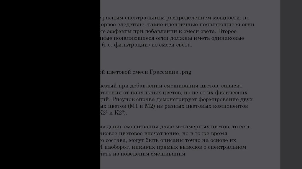 должны иметь одинаковые эффекты при добавлении к смеси света. Второе