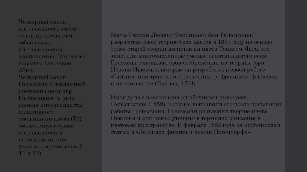работы Грейссмана, Грассманн разъяснил теорию цвета