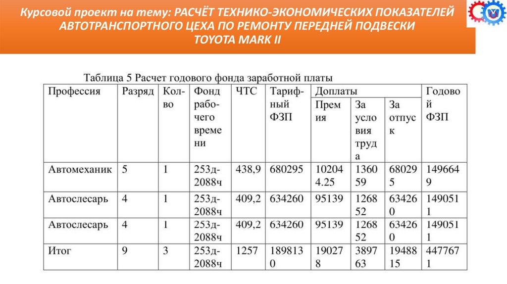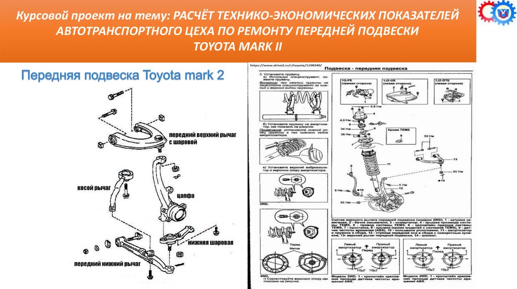 Расчёт технико-экономических показателей автотранспортного цеха по ремонту передней подвески Toyota Mark II