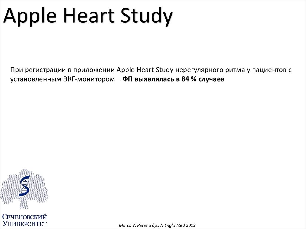 Apple Heart StudyПри регистрации в приложении Apple Heart Study нерегулярного ритма у пациентов с