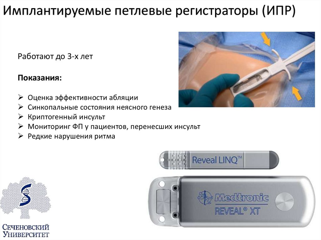 Имплантируемые петлевые регистраторы (ИПР)Работают до 3-х лет